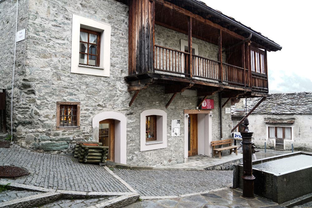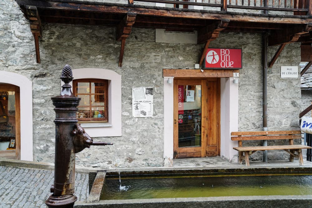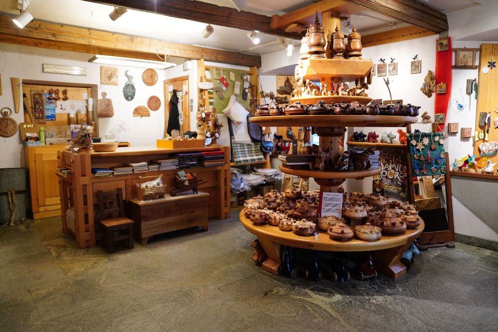 The boutique is located in Antagnod, at 1,699 meters above sea level, in a delightful village from which you can admire an incomparable view of the Monte Rosa massif. The shop is located inside a building known as “La Maison de l’Ours”, the home of the mountaineer who killed the last bear in the Aosta Valley, in the typical style of traditional Aosta Valley architecture. A historically evocative place where you can buy quality craftsmanship, the result of expert technical mastery.