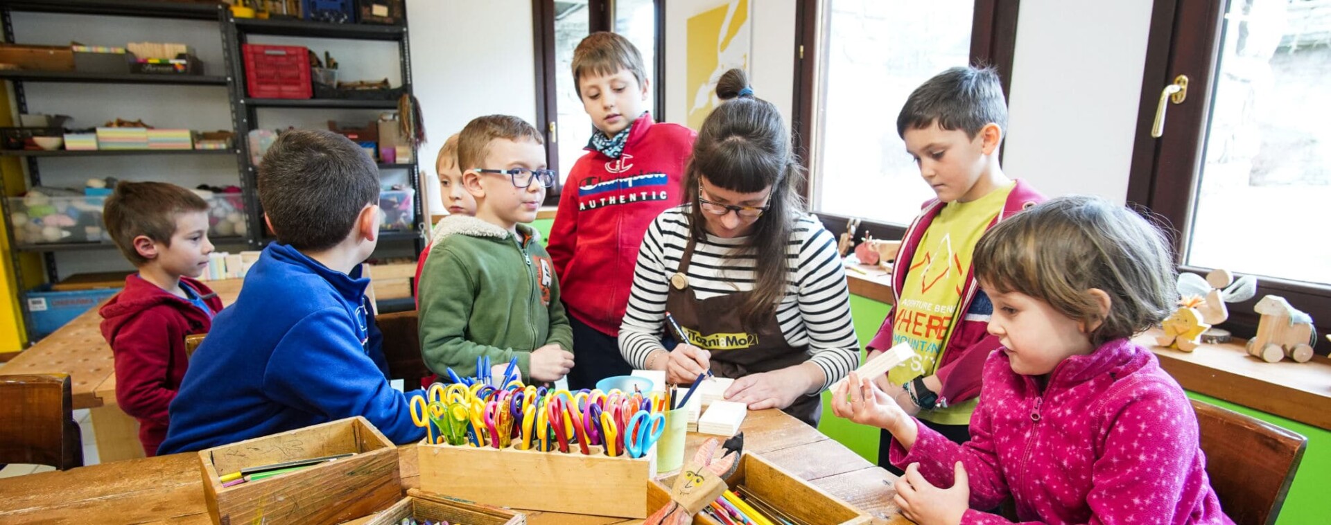 L’offre éducative du musée a pour objectif de faire des enfants les véritables protagonistes à travers des propositions qui stimulent la curiosité des plus jeunes envers la culture artisanale. Dans nos espaces éducatifs, les écoles, les familles, les jeunes et les adultes peuvent découvrir des parcours multidisciplinaires, des visites et des ateliers à la fois amusants et éducatifs. La participation active, l’expérimentation et le jeu sont des éléments essentiels de notre pédagogie, qui vise à apprendre en s’amusant, dans un cadre ludique et éducatif. Les activités engageantes pour les enfants et leurs familles permettent d’approfondir les thèmes présents dans les collections du MAV, les expositions temporaires et l’artisanat valdôtain en général, en suivant les curiosités, compétences et inclinations personnelles des petits et grands visiteurs.